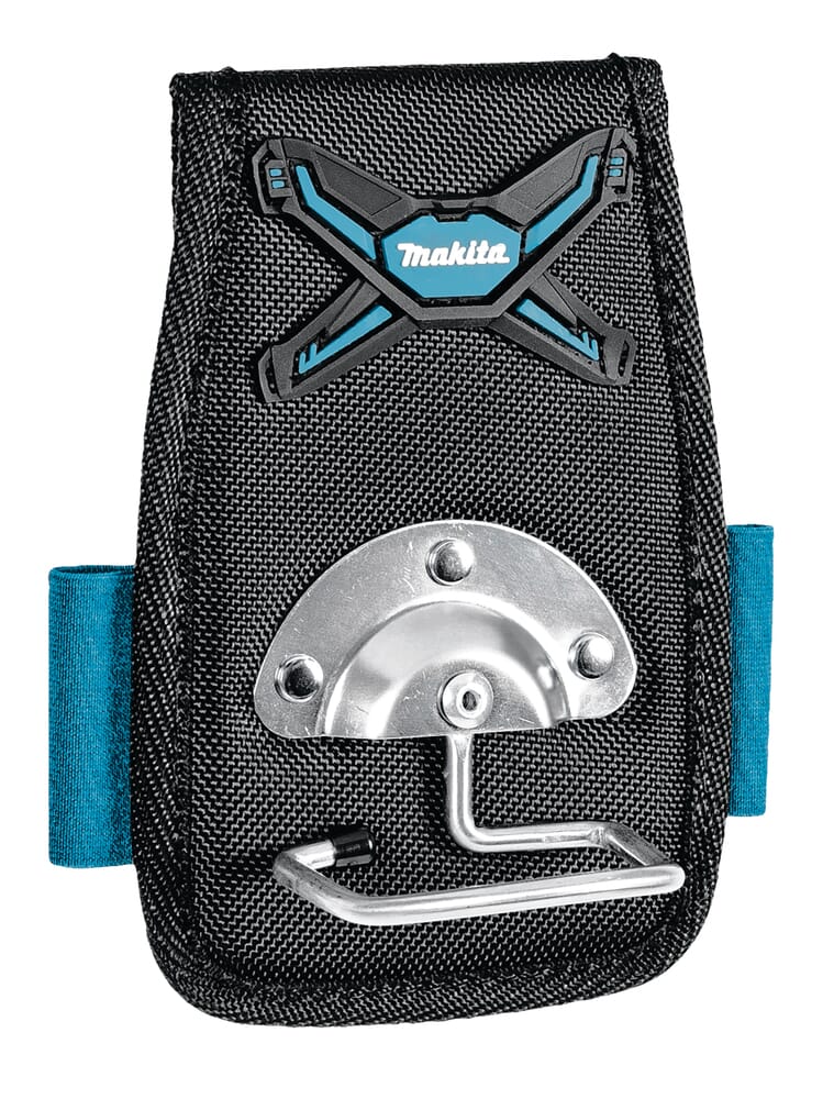 Hammer- oder Axthalter aus Edelstahl, schwingt um das Werkzeug immer in vertikaler Position zu halten. Elastische Schlaufen für z. B. Stifte und Schraubendreher. 50 mm Öffnung für das Tragen an Gürteln, extra verstärkte Rückseite für sicheren Halt. Passend auf das Strap-Belt-System.