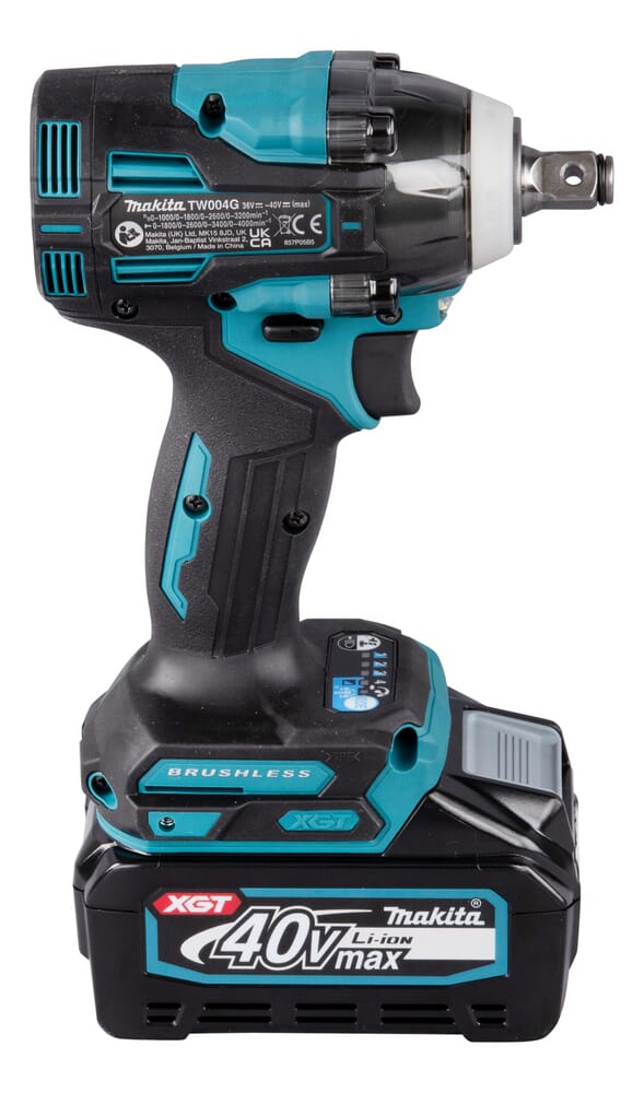 Akku-Schlagschrauber 40Vmax mit Werkzeugaufnahme (Aussenvierkant) von 1/2". Drehzahl: 0-1'000/0-1'800/0-2'600/0-3'200 und Schlagzahl: 0-1'800/0-2'600/0-3'400/0-4'000. Anziehdrehmomente von 350 / 630 Nm. Standard Muttern: M10 - M20. Geliefert mit 2 x 4.0 Ah Akkus, Schnellladegerät, Makapc-B Transportkoffer und mit Gürtel-Halter.