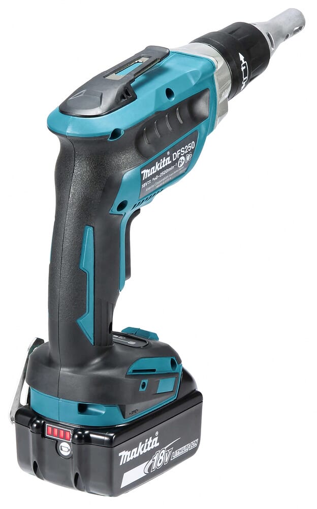 Ein brushless Akku-Schrauber mit Schalterarretierung für Dauerbetrieb. Ergonomischer Griff mit weichem Belag für hohen Arbeitskomfort. Präzise Tiefenregelung und eine Geschwindigkeit von 2'500 U/min, einstellbar über den Schalter. Geliefert ohne Akku, ohne Ladegerät, aber mit einer LED-Licht, Phillips-Bit und ein Makpac-B Transportkoffer.