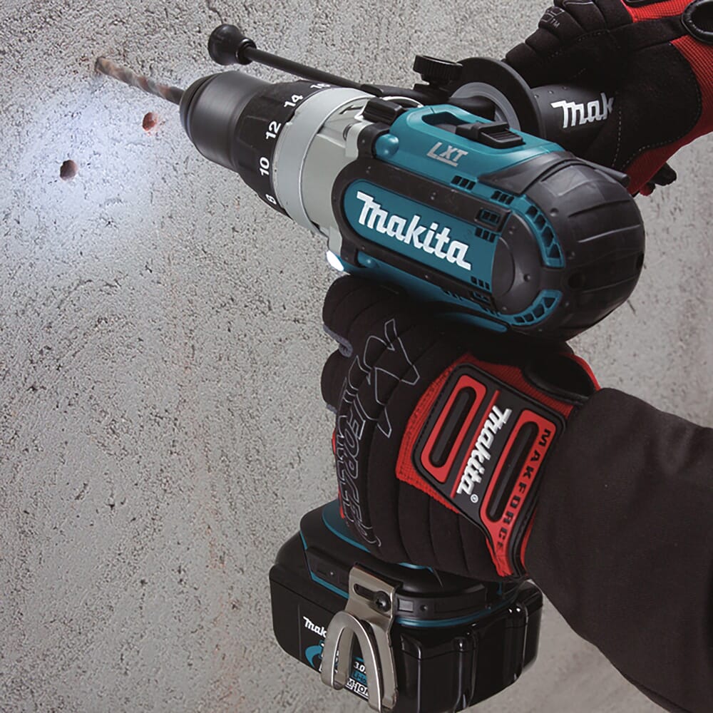 Akku-Schlagbohrschrauber mit 4-poligen Motor für minimalen Energieverbrauch. Einschaltbarer mechanischer Schlag. Automatische Spindelarretierung für einhändigen Werkzeugwechsel. 3 mechanische Gänge und 3x16 Drehmomenteinstellungen + Bohrstellung. Rutschkupplung und Motorbremse. Geliefert ohne Akku, ohne Ladegerät aber mit Seitengriff, Tiefenanschlag und MAKPAC-B Transportkoffer