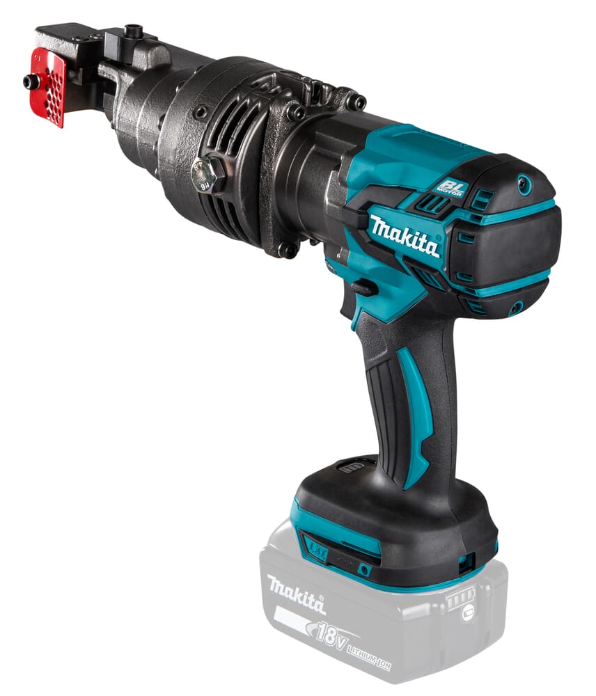 Armierungs-Eisenschneider, der sich gut für gebürsteten Stahl von 3-16 mm eignet. Schneidet 16 mm Bürstenstahl in 2,8 Sekunden mit einer einzigen Ladung ca. 230 Mal (18V mit 5,0 Ah Akku). Umkehrbarer Schneidkopf und schneller Schnitt ohne Funken oder Rückschlag. Maschine allein, ohne Akku, ohne Ladegerät. Mit Transport-Koffer geliefert.